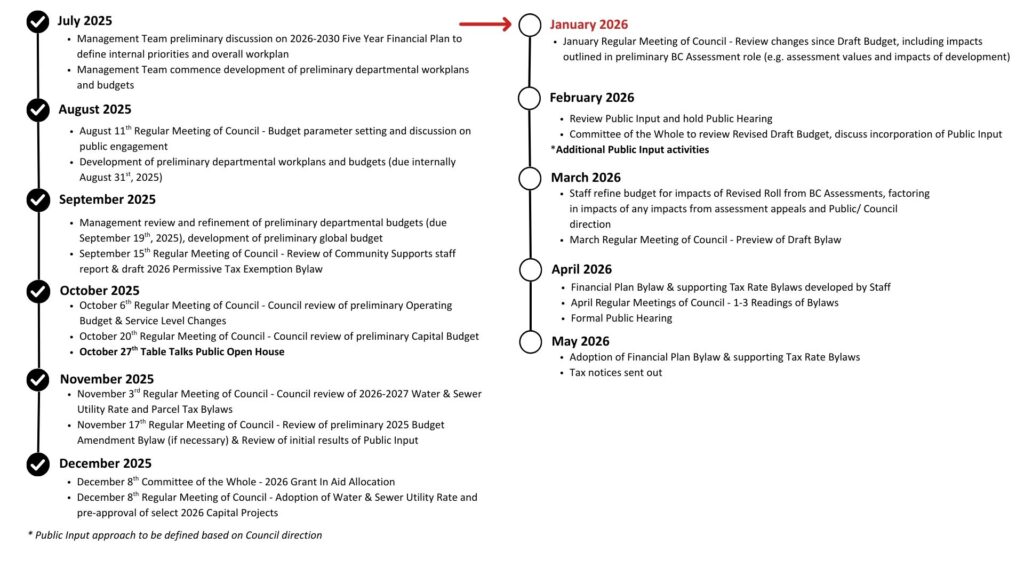 As part of this annual process, the City continually reviews current and future levels of service to make sure resources are used effectively and that we’re providing the right services at the right levels to meet community needs. This means regularly assessing what we do, how we do it, and where we can improve — whether that’s maintaining essential infrastructure, enhancing public spaces/activities, or investing in new initiatives that support long-term community goals.