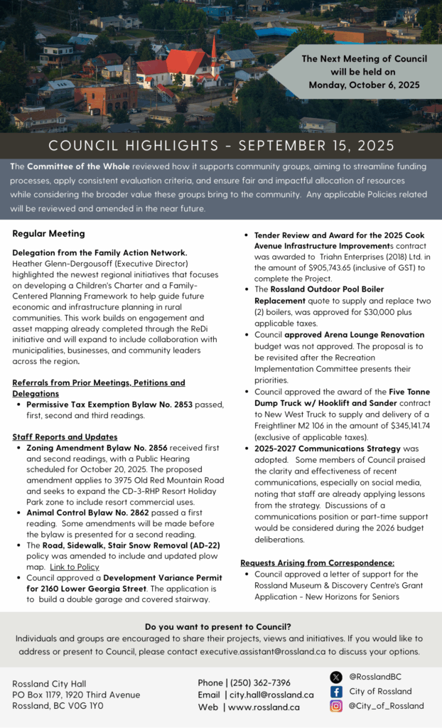 Council Meeting Highlights – Monday September 15, 2025