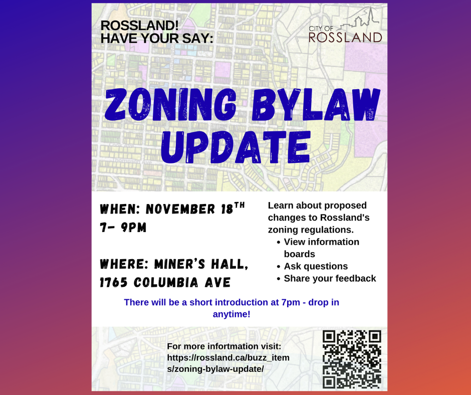 Learn about proposed changes to Rossland’s zoning regulations. Ask questions, share your feedback and view information boards